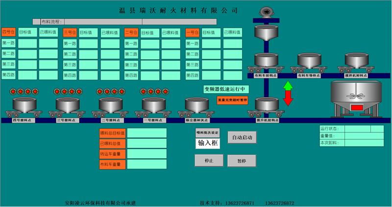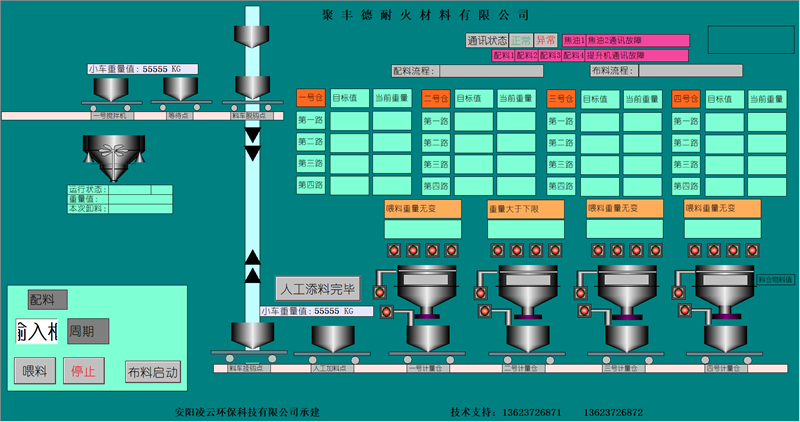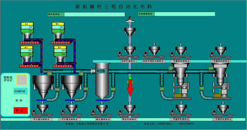 本公司擁有優(yōu)良的生產(chǎn)設(shè)備和技術(shù)開(kāi)發(fā)團(tuán)隊(duì),以良好的管理模式,豐富的生產(chǎn)和設(shè)計(jì)經(jīng)驗(yàn)為環(huán)保工作做出了的一定的貢獻(xiàn)。主要針對(duì)鋼鐵、耐材等行業(yè)無(wú)塵環(huán)保配料工藝的改進(jìn),設(shè)計(jì)和生產(chǎn)全自動(dòng)化無(wú)塵配料設(shè)備。除塵部分分為:集中式收塵和分散式收塵。計(jì)量部分分為:增量計(jì)量和減量計(jì)量控制模式。控制部分分為:純單片機(jī)控制、單片機(jī)加PLC控制、純PLC控制。